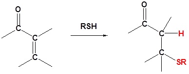 Dalam tambahan 1,4 Nucleophile ditambahkan ke karbon β ke karbonil sementara hidrogen ditambahkan ke karbon α ke karbonil.
